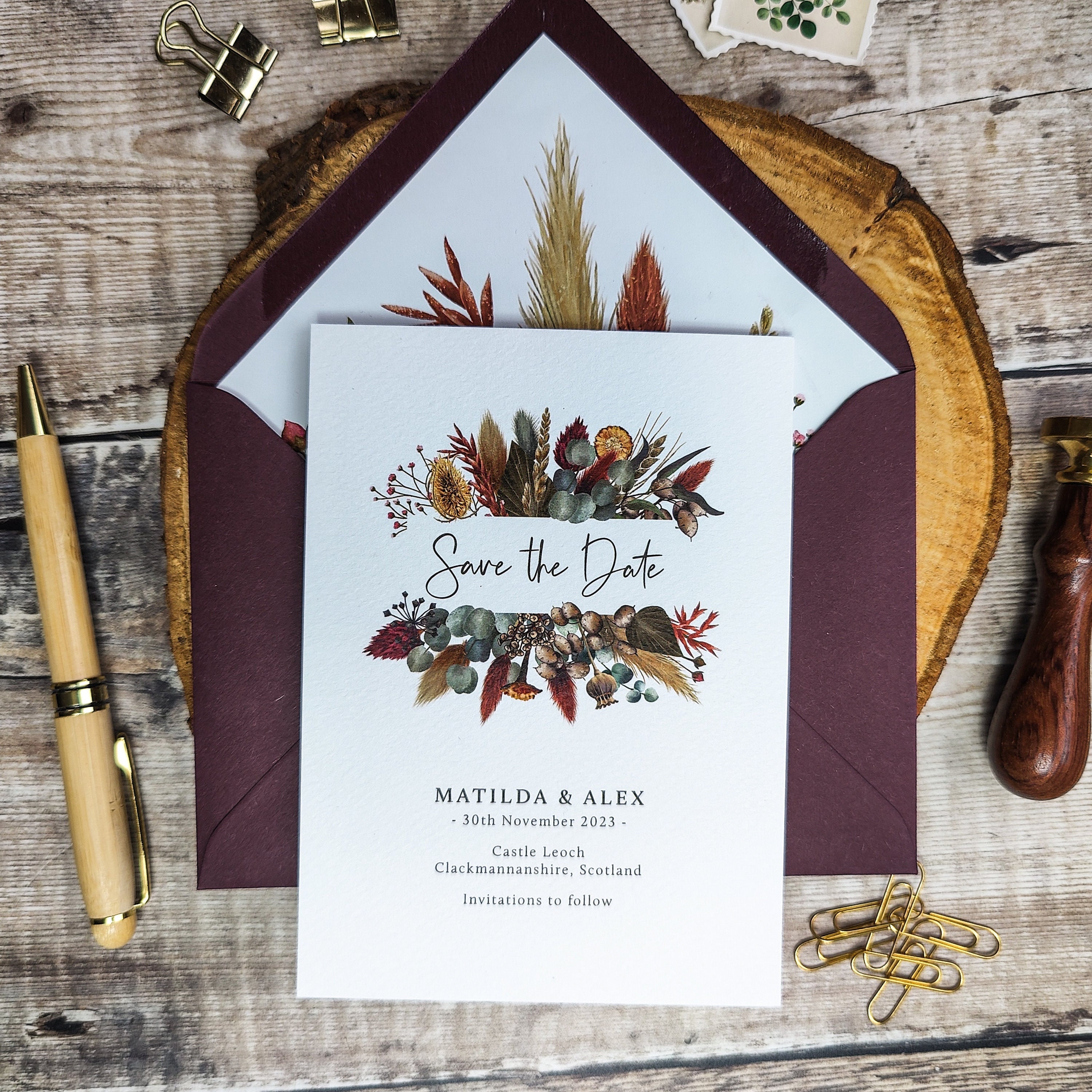 Herbst Save The Date Karte Rustikale Einladung Trockenblumen Etsy De